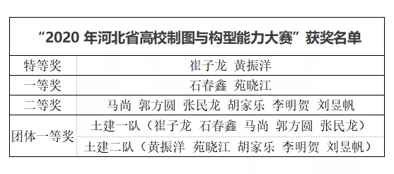 近日,由河北省教育厅主办,河北省工程图学学会承办的“2020年河北省高校制图与构型能力大赛”落下帷幕。在大赛中,必赢官网土木建筑工程学院学子喜获佳绩,共获特等奖2名,一等奖2名,二等奖6名,团体一等奖2项。