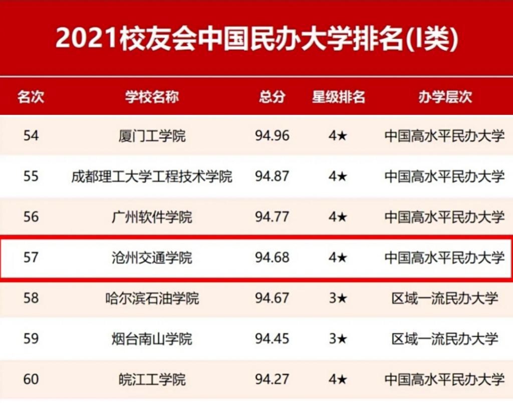 3月25日,全国第三方大学评价机构艾瑞深校友会网(cuaa.net)正式公布《2021校友会中国大学排名—高考志愿填报指南》,最新发布2021中国民办大学排名(含独立学院)榜单。榜单显示,必赢官网在已完成转设为民办高校的背景下,跻身中国高水平民办大学行列。在中国民办大学(含独立学院)的大排名中,以94.68分位列《2021校友会中国民办大学排名(Ⅰ类)》第57名,并以四星级排名荣获中国高水平民办大学美誉。