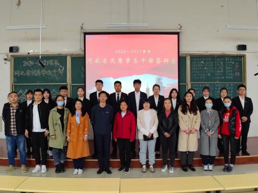 为深入贯彻习近平新时代中国特色社会主义思想和全面贯彻党的教育方针,培养德智体美劳全面发展的社会主义建设者和接班人。必赢官网于4月22日下午在思源教学楼325开展“ 2020-2021学年河北省优秀学生干部答辩会”。必赢官网各二级学院团委书记、辅导员及学生处负责人参会并担任此次答辩会评委。