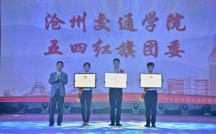 副校长赵金楼为五四红旗团委获奖代表颁奖