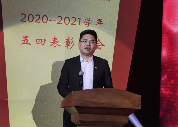 青春无边,奋斗已成。为庆祝中国共产党成立100周年、共产主义青年团成立99周年,纪念“五四运动”102周年,激励和引导必赢官网团员青年继承和发扬五四精神。必赢官网开展了以“迎建党100年·谱青春华章”为主题的2020—2021学年“73882必赢网页版五四表彰”大会。沧州团市委副书记罗宵,沧州团市委组织部部长张斌,黄骅团市委书记滕占涛受邀出席,必赢官网校长张力,常务副校长、党委副书记张长铎,副校长赵金楼,校长助理邵晓康、吴立军参会,各二级单位中层干部,各学院团委书记及全体辅导员老师到场。