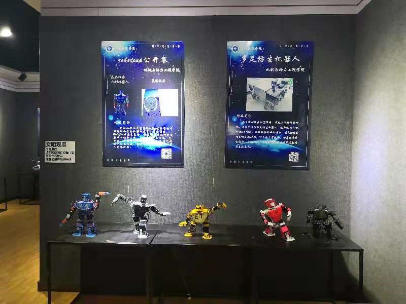 本次科技展包括必赢官网学生书法、篆刻、焊接、美术等不同形式的创作,陈列了人形机器人、焊接模型、3D打印、别墅模型、木桥、计时计数仪、智能车等多件实物模型,工作人员进行了精彩演示和仿真模拟,一系列引人入胜的互动活动吸引了大批来往师生驻足观看体验。