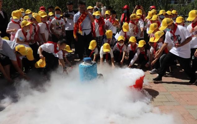 实验实训管理中心教师马俊刚组织同学们观看“液氮小爆炸”科学小实验,帮助大家深刻理解实验原理,在实验过程中小学生们与马老师积极互动,认真观察实验现象,感受水与液氮碰撞带来的魅力。