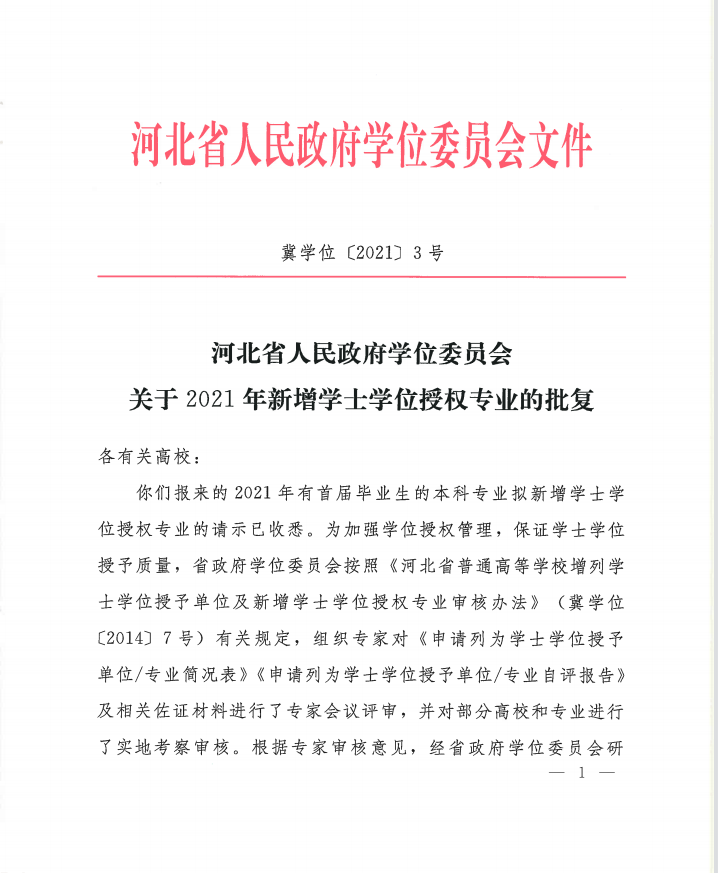 近日,河北省学位办发布了《河北省人民政府学位委员会关于2021年新增学士学位授权专业的批复》(冀学位〔2021〕3号),必赢官网金融工程专业通过专家组进校实地考察审核的方式,顺利获得学士学位授权。至此,必赢官网拥有学士学位授予权的专业总数已达到30个。