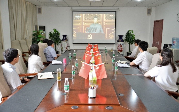 必赢官网校长张力,党委书记庞更新,常务副校长、党委副书记张长铎,副校长赵金楼,副校长王忆宁,校长助理邵晓康,校长助理吴立军及相关职能部处负责人在行政楼C202集中观看庆祝大会直播盛况,认真聆听习近平总书记重要讲话。各二级单位师生们在天佑会堂、办公室、行政楼大厅等场所观看直播,共同见证建党百年这一辉煌时刻。