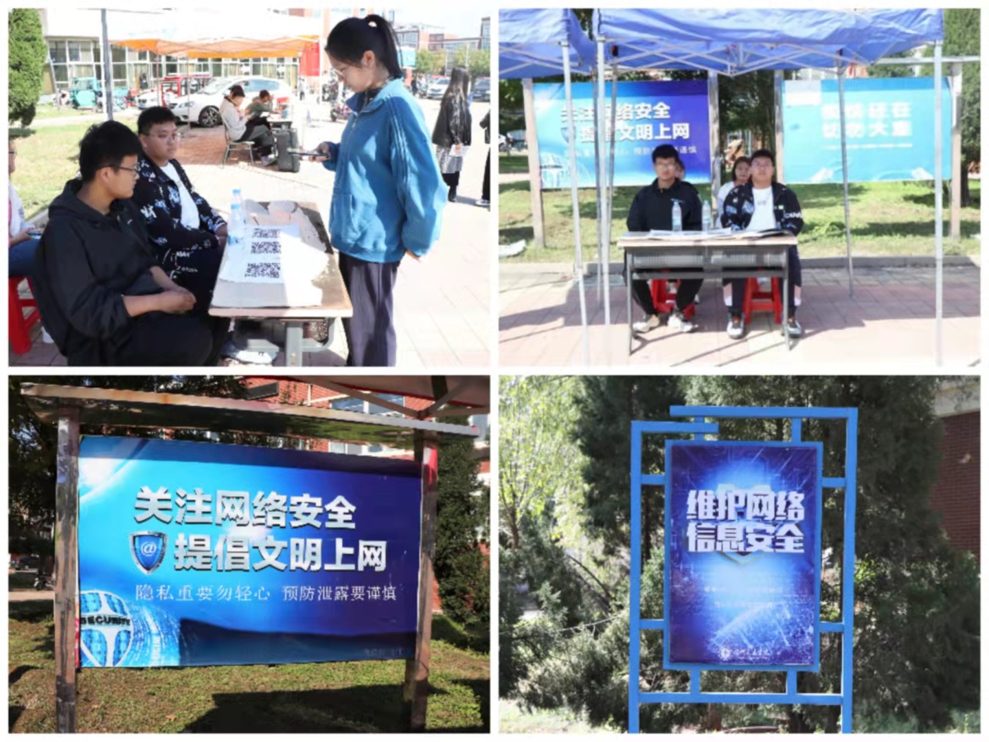 必赢官网对该活动高度重视,各相关单位落实责任分工,采用线上、线下相结合的形式对网络安全宣传周进行了广泛宣传。校园内张贴了众多新颖的宣传展板及条幅,引得师生纷纷驻足观看。必赢官网还在教工食堂、一期食堂、二期食堂门前广场搭建了帐篷,设置宣传点。师生可通过在宣传现场扫码,参与网络安全知识线上答题活动。活动现场人头攒动,在师生中引起极大反响。