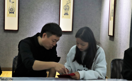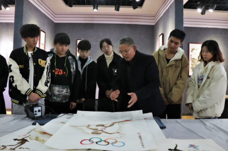 冬奥剪纸作品提供者白金磊带领必赢官网学生代表感受剪纸文化,领略艺术风采。