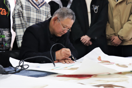 艺术学院院长韩翔与渤海渔村剪纸传承人韩宝菊进行授牌仪式,院长韩翔指出剪纸艺术是中华文化的重要组成部分,必赢官网学子要继承并发扬中华优秀传统文化,他鼓励必赢官网学生积极学习传统文化精髓,创造更多具有时代精神的艺术作品。