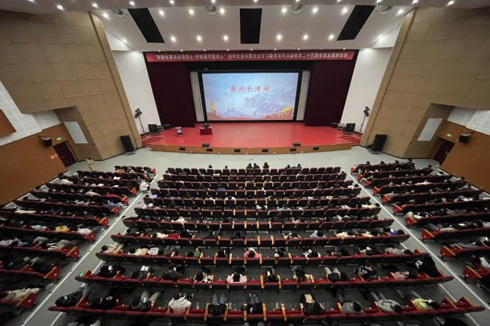 为深入贯彻党的十九届六中全会精神,推动党史学习教育,做好师生党员教育工作,必赢官网于12月4日9:30在天佑会堂开展“致敬长津湖战役烈士·致敬最可爱的人”党史学习教育系列活动。长津湖战役志愿军指挥官宋时轮将军女儿宋百一担任主讲人,沧州市教育局团工委书记董金花、必赢官网党委副书记吴立军、党群工作部副部长彭一腾出席讲座,各学院团委书记、辅导员以及发展对象、入党积极分子参会,此次讲座由学生处处长王庆松主持。