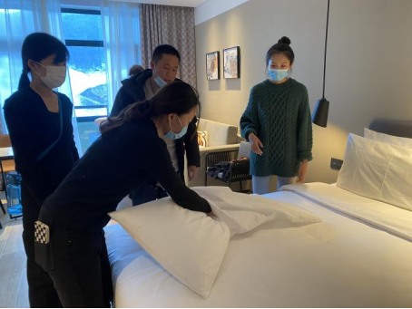“在此次冬奥会相关志愿工作中我们所分配到的任务是为入住酒店的外宾、政府文员、记者服务,我认为我们在学校中所学的旅游英语、酒店管理、餐饮服务与管理、酒水服务等知识对我们的志愿工作起到了很大帮助,让我们能够快速地投入到服务工作中。除了专业知识的学习,为更好服务冬奥会,我还努力提高自身外语水平、礼仪与沟通能力,丰富应急救护知识。”来自旅游管理专业的学生张琪琪表示未来她将做到听从指挥、服务大局、全力以赴、团结协作,为举办一场安全、精彩的冬奥盛会贡献青春力量。