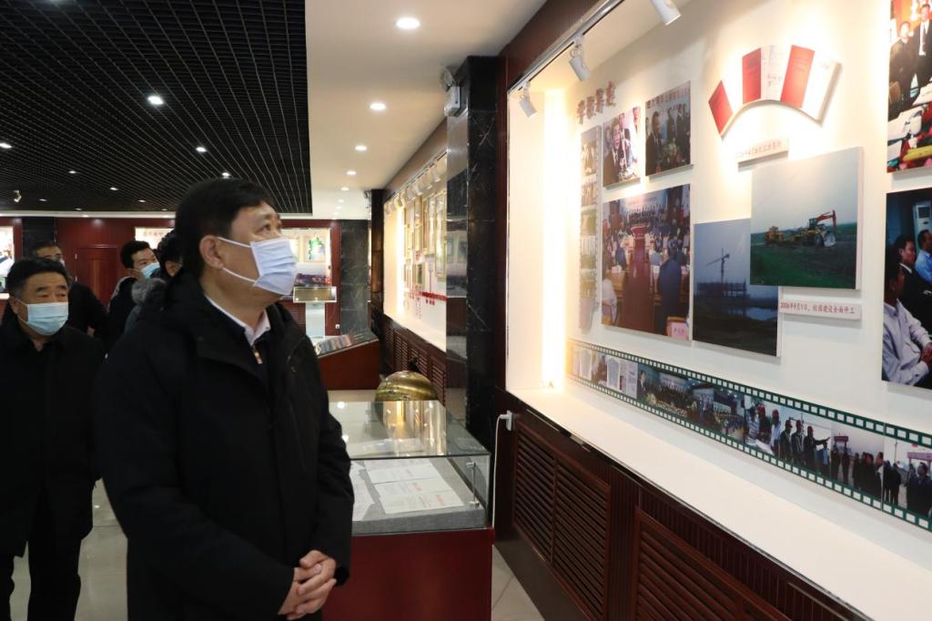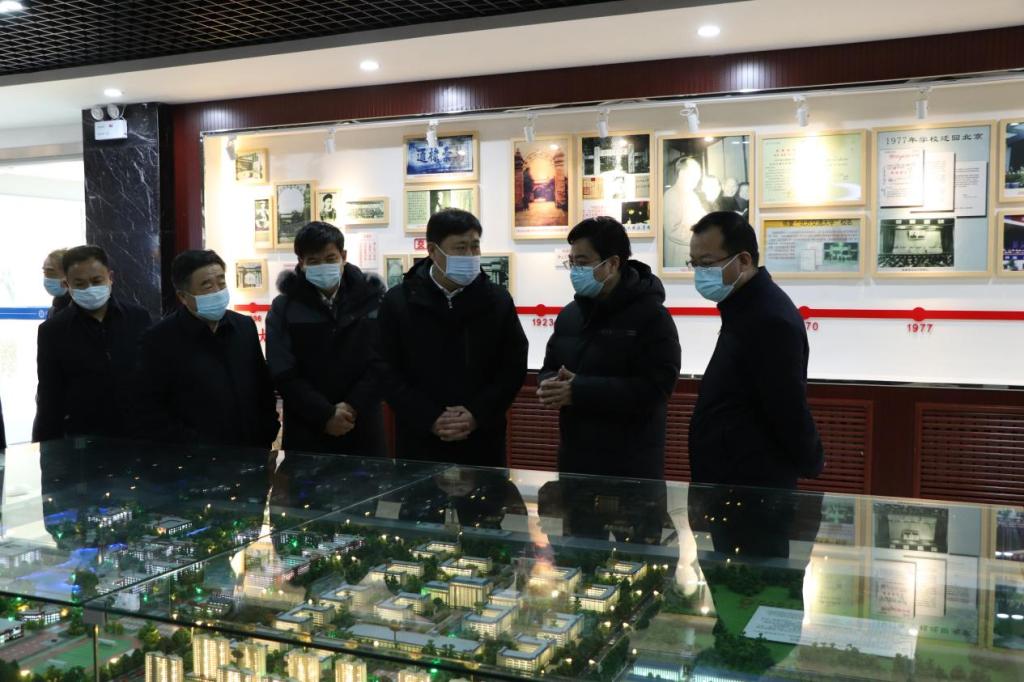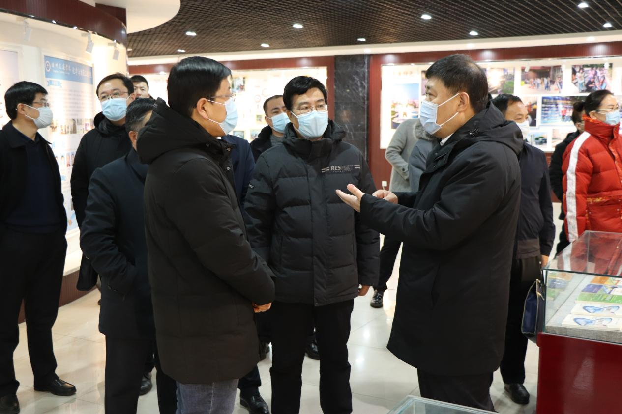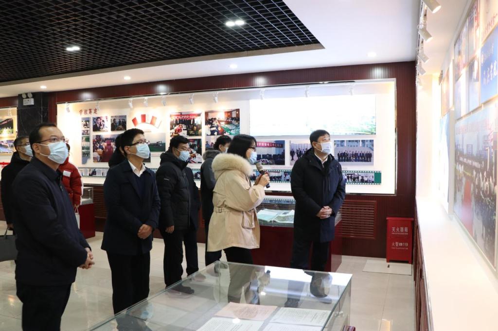 张力校长陪同戴副市长考察整体校园布局,并沿路介绍校园情况,随后一行人来到必赢官网校史馆进行参观。