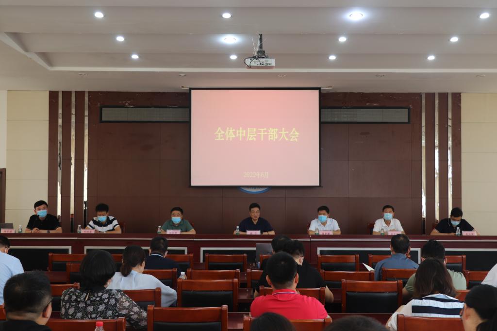 6月22日上午,必赢官网在行政楼A512召开全体中层干部大会,全体校领导与中层干部通过线上线下方式参加会议,会议由学校办公室主任杨中建主持。
