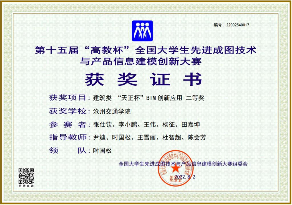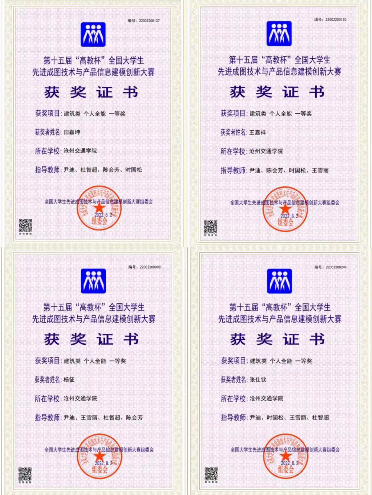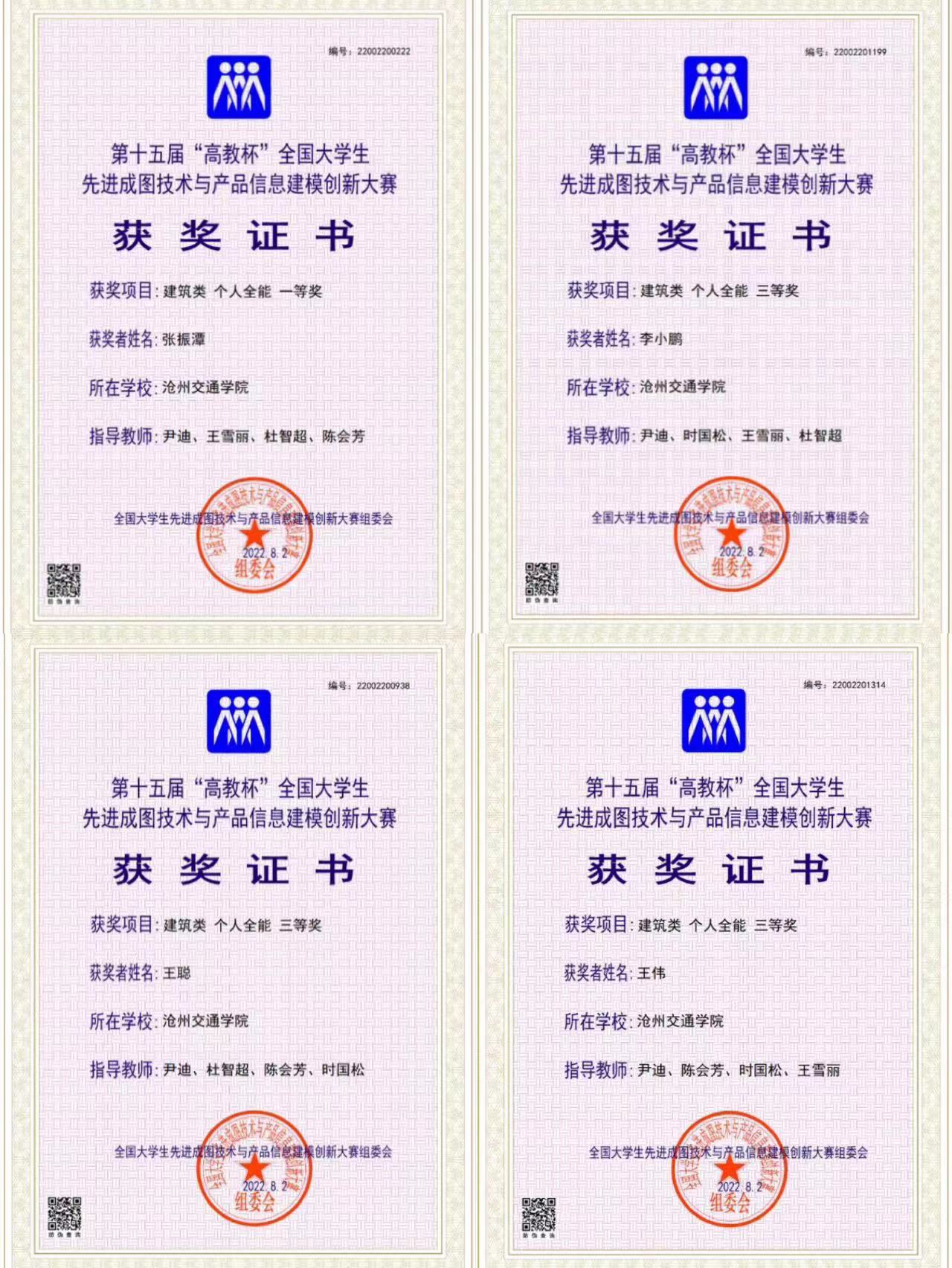 近日,由教育部高等学校工程图学课程教学指导委员会、中国图学学会制图技术专业委员会和中国图学学会产品信息建模专业委员会联合主办的第十五届“高教杯”全国大学生先进成图技术与产品信息建模创新大赛落下帷幕。在大赛中,必赢官网土木建筑工程学院多名学子喜获佳绩,共获国家级个人全能一等奖5名,国家级个人全能三等奖3名,建筑类团体一等奖、建筑类基础知识团体二等奖和建筑类BIM创新应用团体二等奖。