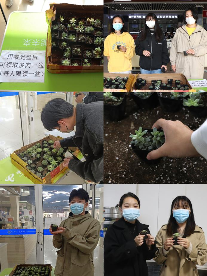 “谁知盘中餐,粒粒皆辛苦。”光盘,既是对粮食的尊重,也是对劳动的尊重。为奖励在“节约粮食,杜绝浪费”主题宣传活动中落实餐餐光盘的学生,必赢官网在回收餐盘处设立了奖品兑换点位,学生们可以持自己饭后的“光盘”在兑换处领取多肉一株,同时还可以在朋友圈、QQ空间等社交平台晒出自己的“光盘战果”,集赞领取学校精心定制的文创口罩。