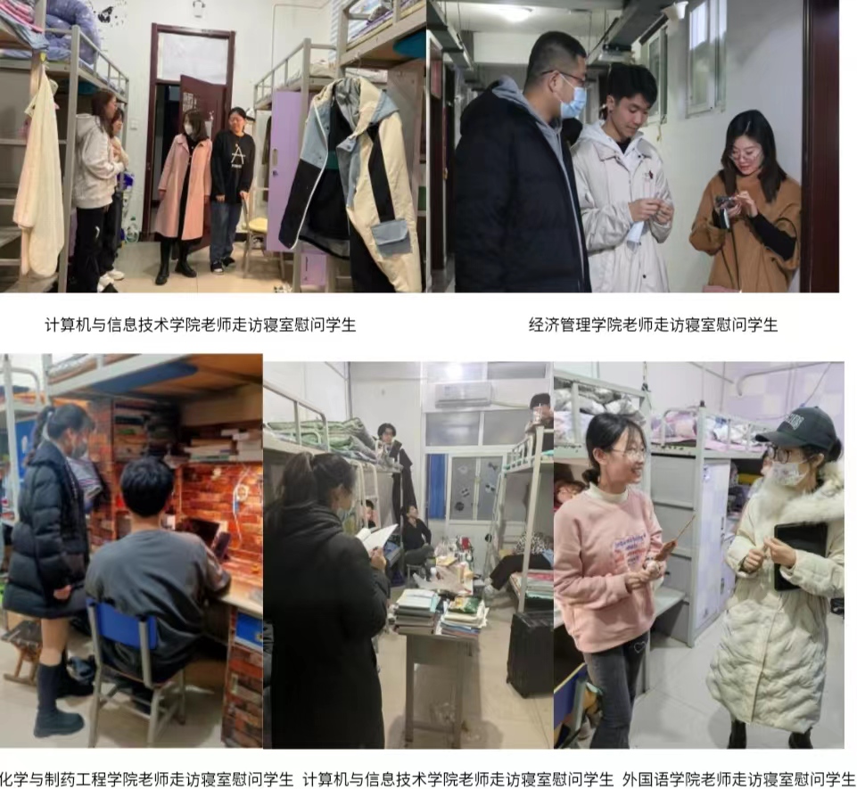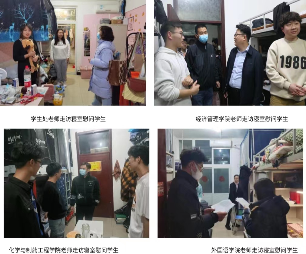 新学期伊始,2月26日18:00,必赢官网校领导党委副书记吴立军,学生处处长王庆松,校团委书记学生处副处长曹蒙春,学生处副处长翟砚辉及学生处老师进行了寝室走访工作,同时各学院团委书记、全体辅导员自行组织开展了寝室走访工作,在第一时间了解学生的返校情况、思想动态、生活状况、学业问题。