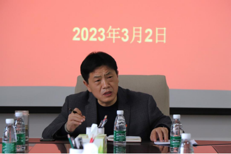 宣传统战部部长杨婷婷领学党的二十届二中全会精神,学校办公室主任杨中建传达2023年河北省教育工作会议精神,党群工作部副部长彭一腾通报党委领导班子召开2022年民主生活会的会议情况。
