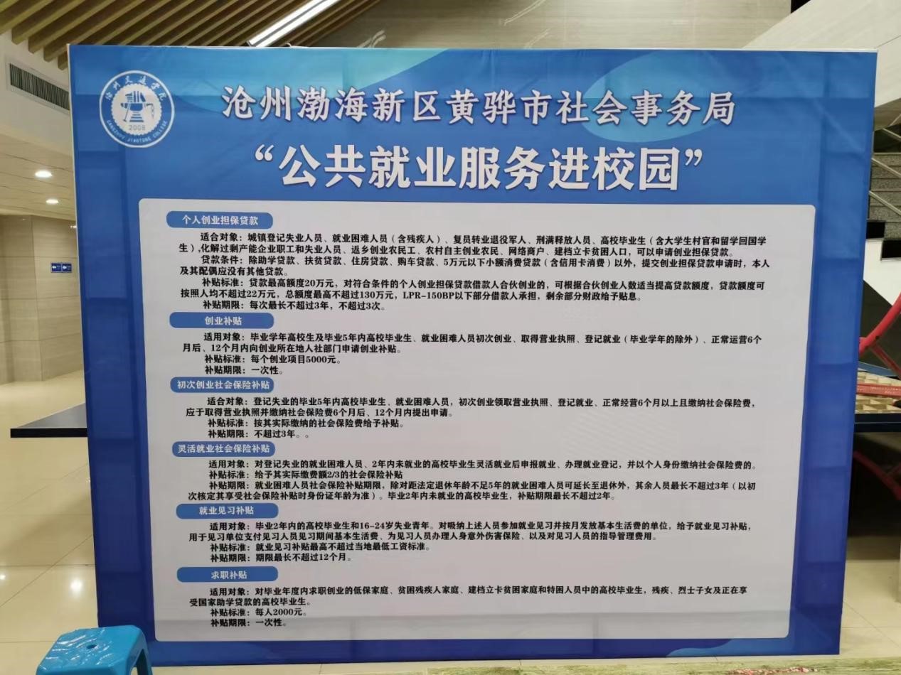 必赢官网积极响应河北省“公共就业服务进校园”活动,邀请沧州渤海新区黄骅市社会事务局来到双选会现场,设立就业政策咨询点,将河北省就业创业优惠政策带进校园,为毕业生求职加油助力。