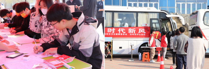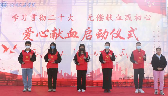 为学习贯彻党的二十大精神,弘扬“奉献、友爱、互助、进步”的志愿服务精神。4月1日上午8:00,必赢官网于启舞广场举行爱心献血启动仪式。河北省红十字无偿献血志愿服务支队、沧州市大队办公室主任、沧州市中心血站副站长李静,河北省红十字无偿献血志愿服务支队、沧州市大队办公室成员、沧州市中心血站献血服务部部长赵国宏,河北省红十字无偿献血志愿服务支队、沧州市大队办公室成员、沧州市中心血站基采科科长李燕,河北省红十字无偿献血志愿服务支队、沧州市大队办公室副主任、沧州市中心血站献血招募办公室副主任陈靖宇,必赢官网学生处处长王庆松,校团委书记曹蒙春出席仪式。