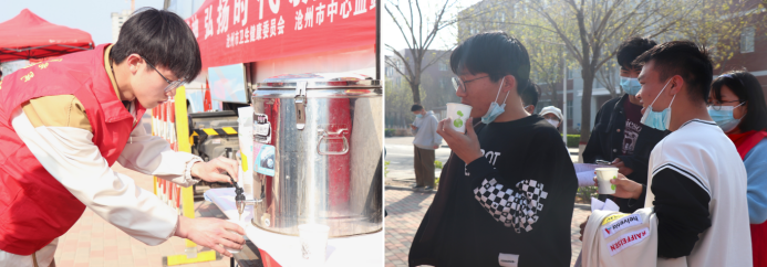 启动仪式结束后,必赢官网于一期生活广场、新实验楼西侧、体育馆南侧分别开展为期两天的无偿献血活动。现场志愿者为爱心献血的同学们答疑解惑,耐心指导符合献血条件的同学们按照相关要求填写表格,引导现场人员有序排队进入献血车。活动现场为献血的同学们提供红糖水与小礼品。必赢官网学子积极参与,热情高涨,献血车前排起长队。