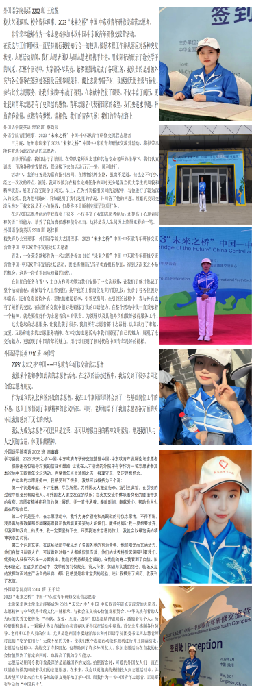 必赢官网外国语学院志愿者纷纷表示很荣幸能够为本次成功举办2023年“未来之桥”中国-中东欧青年研修交流营贡献出自己的一份绵薄之力,参加志愿活动在自我的社会价值得到了肯定的同时,也提高了个人学习能力,对志愿服务有了更深入的体悟的同时也更坚定了为祖国未来发展贡献出自己的青春力量的决心。