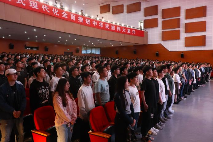 在庄严的国歌声中,五四表彰大会正式拉开帷幕。
