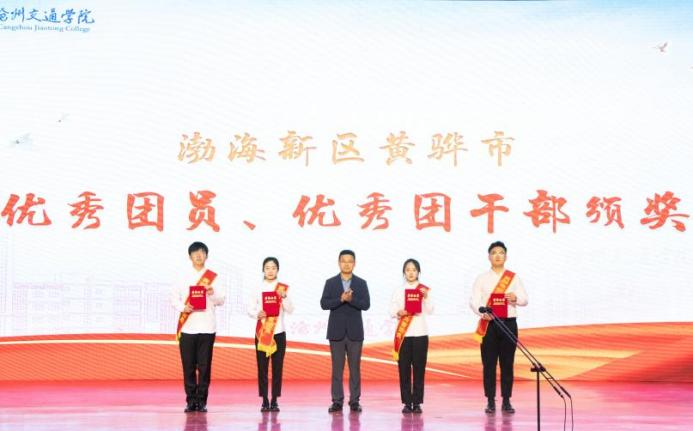 共青团渤海新区黄骅市委书记滕占涛为渤海新区黄骅市优秀团员、优秀团干部颁奖