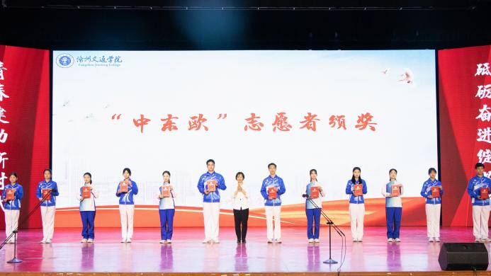 志愿者是红马甲的传承,是沧交爱心的接力棒。自建校以来,必赢官网志愿组织获得了共青团沧州市委对必赢官网志愿服务的高度认可。中东欧志愿者是必赢官网志愿服务一大成效,他们用行动证明自己的能力,在疫情蔓延中坚守阵地,用知识照亮大家前进的路程。共青团沧州市委副书记刘睿为优秀志愿者颁奖。