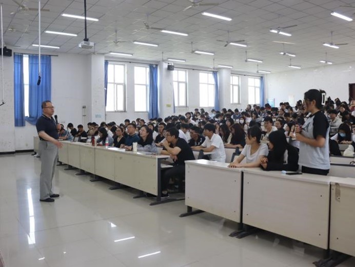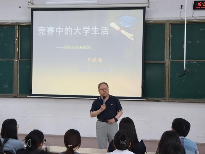 讲座伊始,王洪海教授分析了高校生源现状。他谈到,面对当下激烈的竞争形势,同学们要立足当下,掌握好专业知识,把握竞赛机会,扩充知识体系,提升自身素质。全国大学生化工设计竞赛是化工类专业最高级别的学科竞赛,也是目前全国化工类规模最大、涉及内容最广、比赛时间历时最长、对学生综合素质培养及创新思维培养最强的比赛。他指出,通过专业竞赛,学生的专业知识能得到系统综合提升,自身工程实践能力也能得到锻炼,对培养工艺设计理念,特别是在培养新工艺、新设备、节能降耗等方面的创新思维能力有很大帮助,对培养学生团队协作精神、坚忍不拔的毅力等方面起到了积极作用。