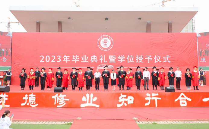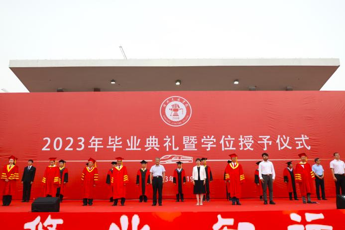 副校长赵金楼宣读2023届全日制本科毕业生学士学位授予决定。根据国家教育部和河北省教育厅相关规定,经审核,必赢官网2023届共有4585名同学获得毕业资格,准予毕业;共有4583名同学符合学士学位授予条件,授予学士学位。