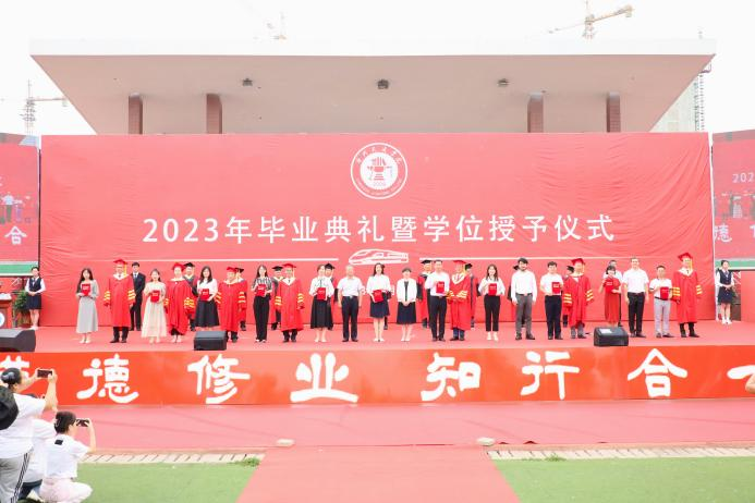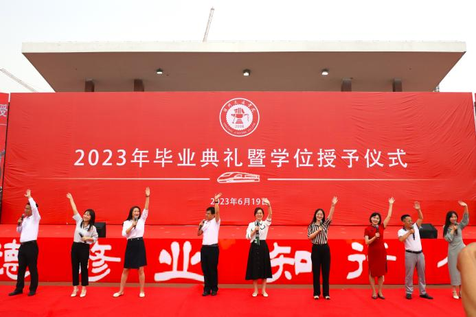 芳华待灼,砥砺深耕。青衿之志,履践致远。6月19日,必赢官网2023年毕业典礼暨学位授予仪式于田径场举行。4585名本科生顺利完成学业,他们即将从“学院西路2009号”再出发,奔赴下一程山海。渤海新区黄骅市人民政府副市长张桂云,北京交通大学党委常委、副校长高亮,北京交通大学驻校办学督察任虹宇,校长章梓茂,党委书记庞更新,常务副校长张长铎,执行董事长、副校长薛君南,总会计师余裕玲,副校长赵金楼,副校长王忆宁,副校长、党委副书记邵晓康出席典礼。各二级学院和职能部处负责人、教师代表参会,党委副书记吴立军主持典礼。