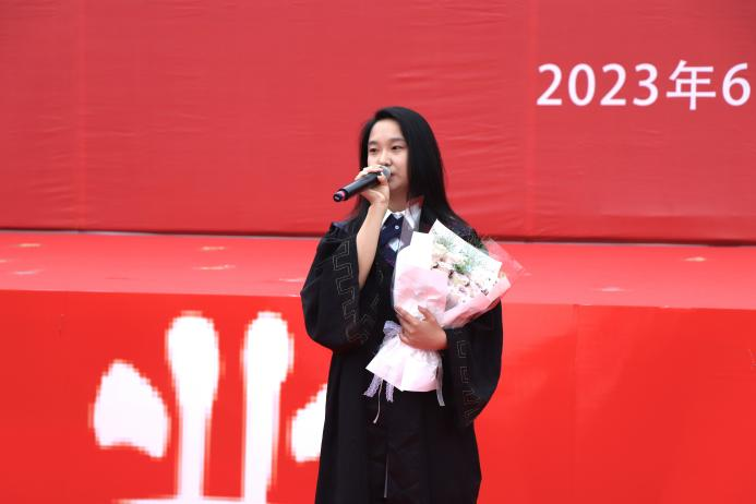土木建筑工程学院王子欣苒同学代表全体毕业生在发言中深切感怀了四年来与母校走过的点滴,细数在校期间收获的经验和累累硕果,表达亲身见证学校不断发展的自豪之情。她代表毕业生向大学时期所有关心、帮助和包容过大家的老师们道一声感谢,虽有万千不舍,但未来仍会怀揣着在母校的所学所获继续勇往直前,最后她祝愿每一位毕业生都能前程似锦、未来可期。