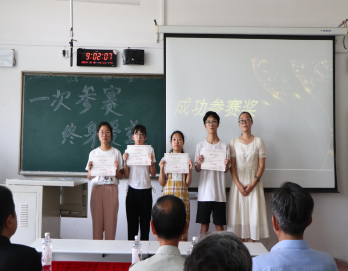 数学教研室主任罗跃生为成功参赛的队伍颁奖留念