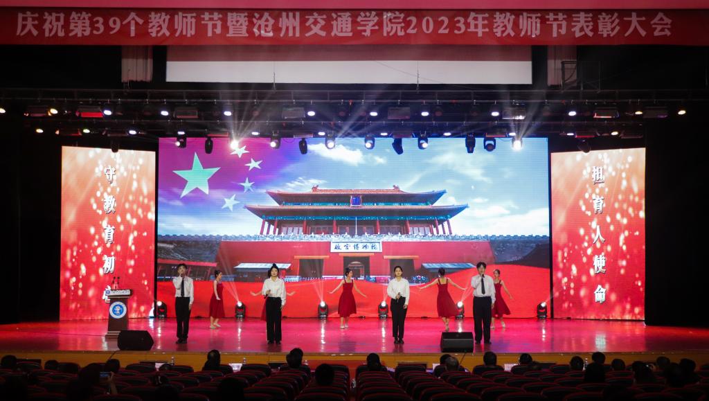 表彰之余,精彩尽显。歌曲《春暖花开》悠扬婉转的旋律,将歌声与花朵化为祝福,传递对师恩的感谢;合唱《和你一样》,用歌声表达了每一名教育工作者,都有着相同的目标,相同的情怀,相同的愿景;同学们的歌曲与朗诵《老师,谢谢您》,将感激之情、共鸣之声、坚定之志相互交织,致敬辛勤耕耘的园丁;歌舞表演《不忘初心—党旗飘扬的方向》,用嘹亮的歌声和优美的舞姿表达对老师们浓浓的敬意。