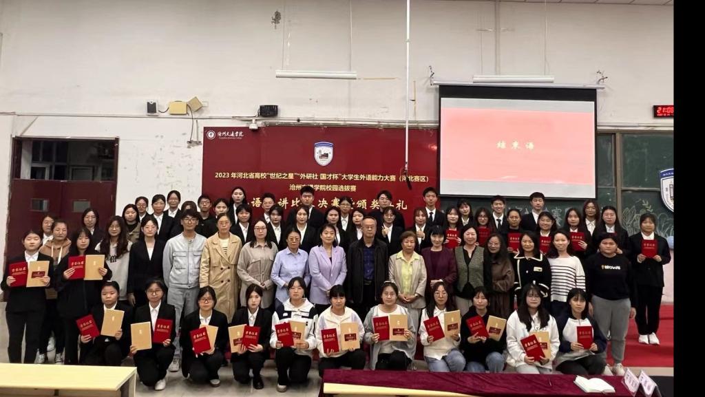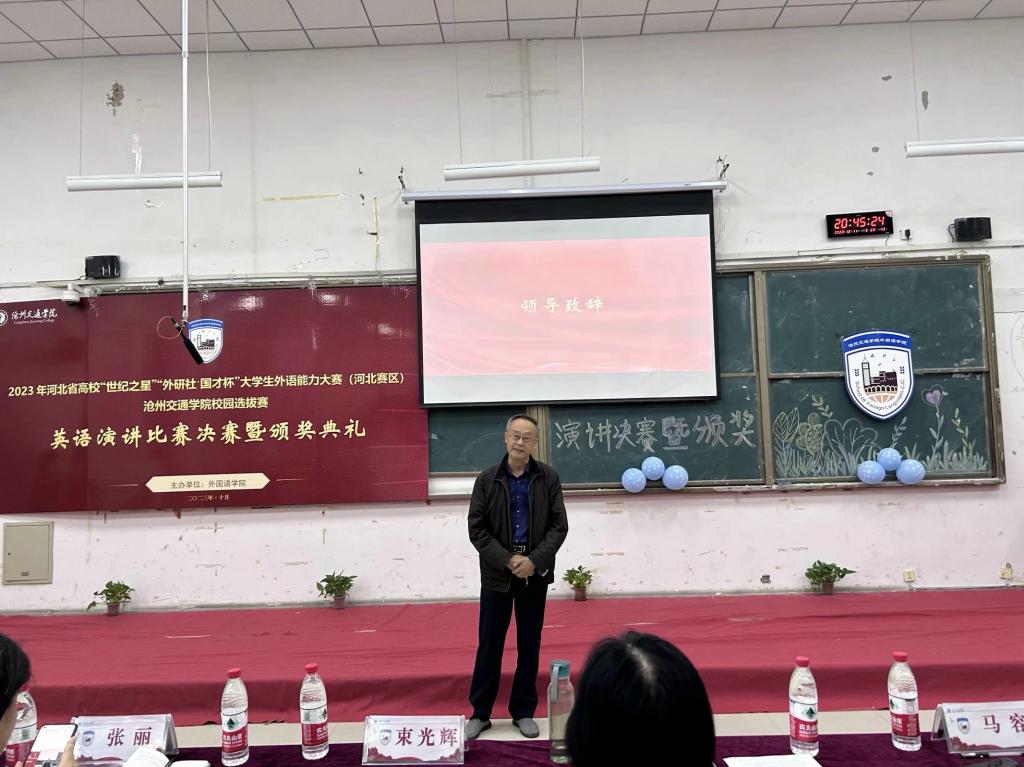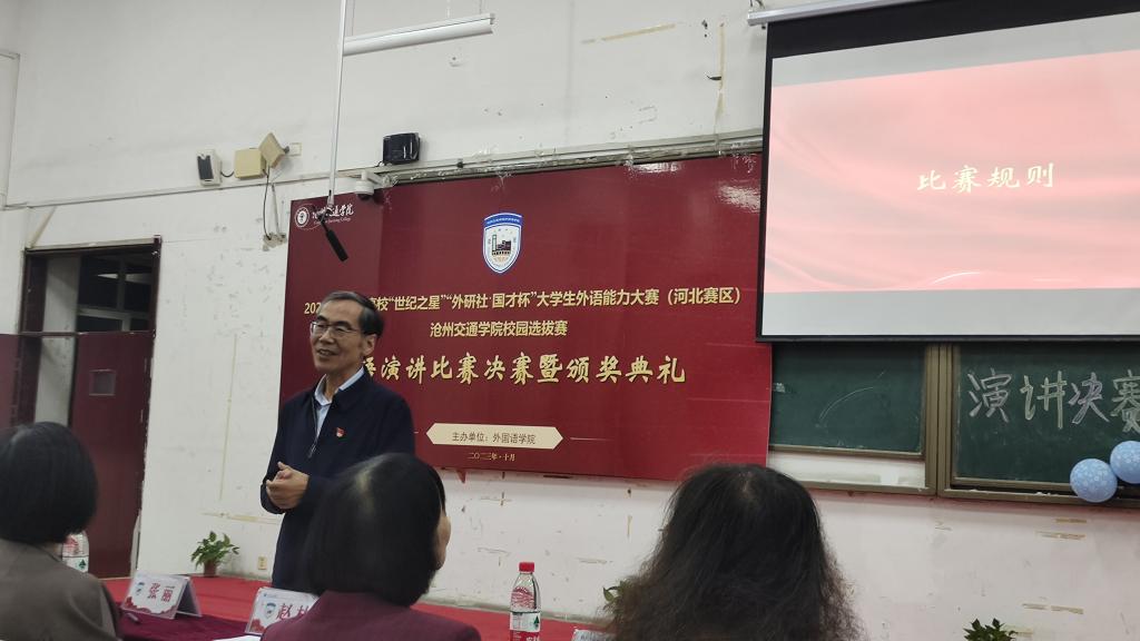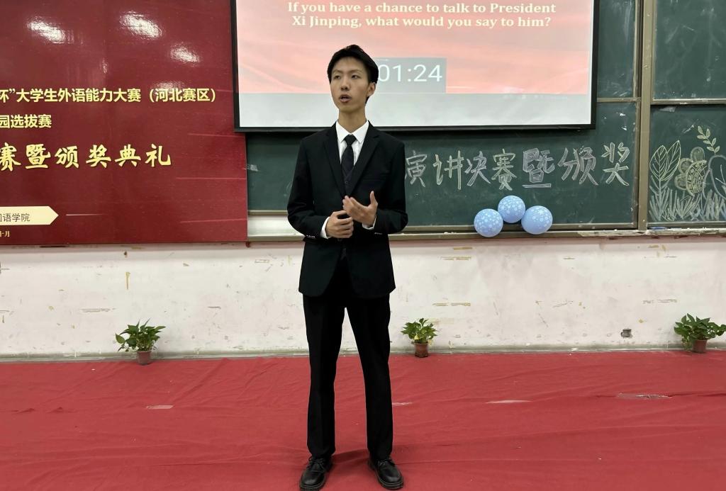 10月11日晚七点,必赢官网2023河北省高等学校“世纪之星”“外研社·国才杯”大学生外语能力大赛(河北赛区)校园选拔赛英语演讲比赛决赛暨颁奖典礼在思源楼325教室成功举办。