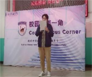 在主持人的鼓励下,同学们以演讲、猜词、分组讨论等不同形式展示英语风采,介绍历史上的丝绸之路、“一带一路”获得的成就和“一带一路”沿线不同国家的文化以及英语学习中的经验。