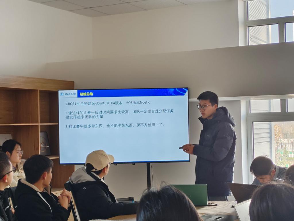 赛后,参加比赛学生成员面向全组进行了赛事总结与经验分享。12月2日在北京交通大学黄骅轨道交通综合测试基地举办参赛经验分享会,成员分享了各自的参赛历程、技术任务、学习体会,这份宝贵的参赛经验,将会成为面对未来的勇气、攻克下一个技术目标的底气。