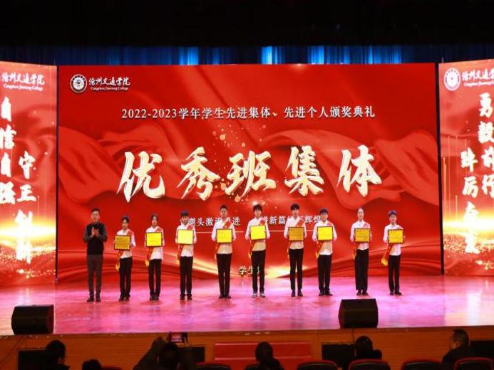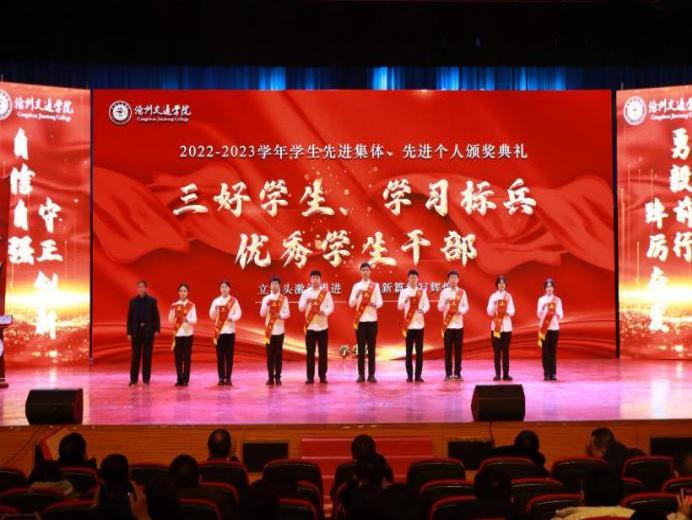 本次颁奖典礼以《立潮头激流勇进,谱新篇续写辉煌》主题视频开篇,介绍了2022-2023学年学生先进集体、先进个人以及各项奖学金的评选情况,展现了沧交学子勤于学习、敢于奋斗、勇为人先的卓越风姿。