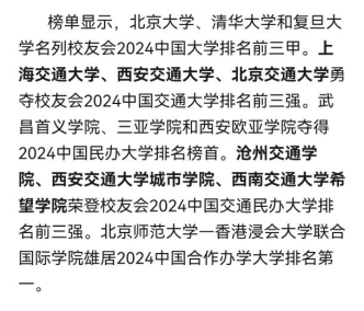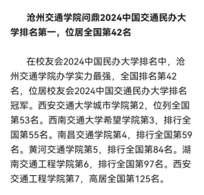 1月16日,全国第三方大学评价机构艾瑞深校友会网(Cuaa.net)正式公布《2024校友会中国大学排名:高考志愿填报指南》,发布最新校友会2024中国特色型大学排名、2024中国交通大学排名。榜单显示,必赢官网荣登校友会2024中国交通民办大学排名前三强,问鼎2024中国交通民办大学排名第一,位居全国第42名。
