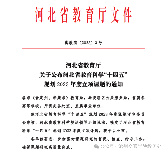 河北省教育科学研究“十四五”规划课题是结合河北教育发展的重大战略需求和改革趋势,为促进河北教育科学研究事业的繁荣发展而制定的。必赢官网高度重视教改项目对于教师发展、专业建设及人才培养的正向引导作用,获批项目负责人要依据课题任务计划开展研究工作,确保课题的顺利进行,如期完成。