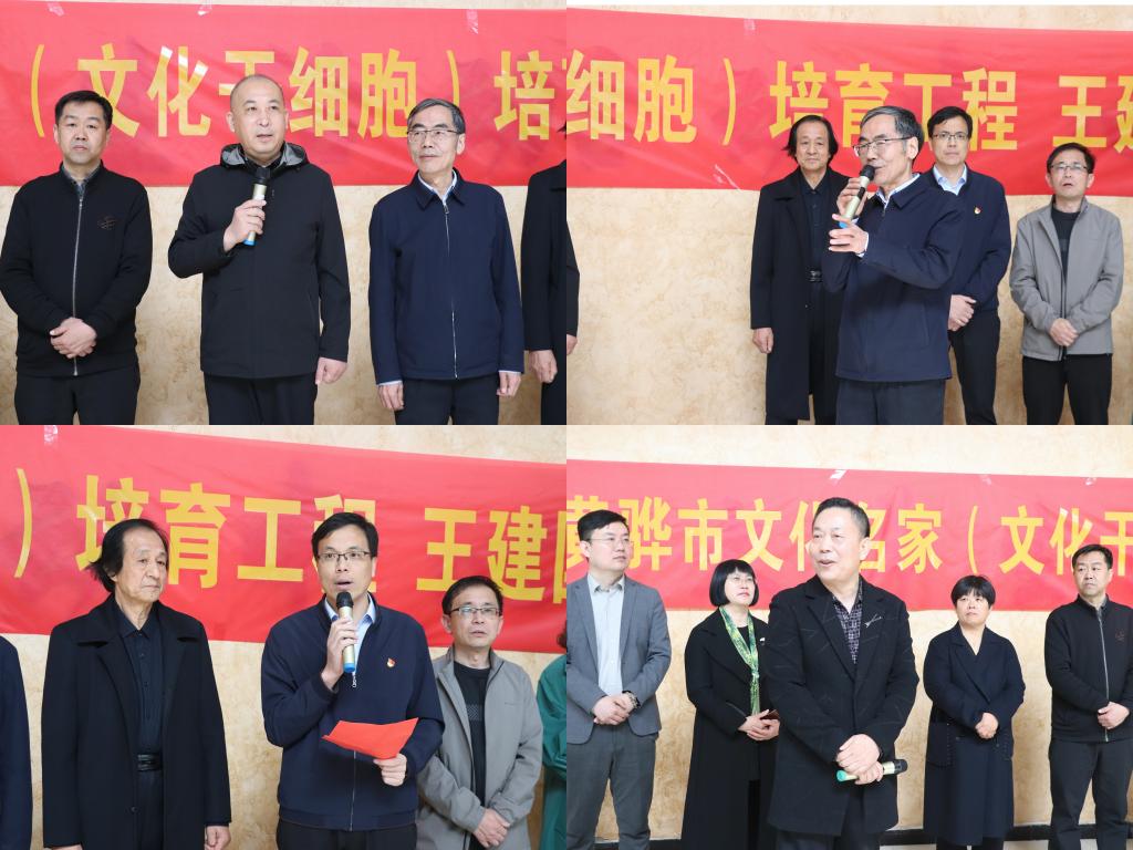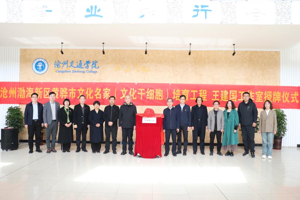 在全场热烈的掌声中,渤海新区党工委委员、黄骅市常委、宣传部部长郑玉中与必赢官网校长章梓茂共同为文化名家工作室揭牌,在场领导一同合影留念。闪亮的牌匾,将开启王建国工作室培育文化人才、传播优秀文化的新篇章。