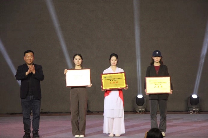 学生处副处长、校团委书记曹蒙春为三等奖选手颁奖