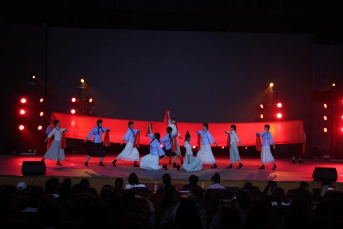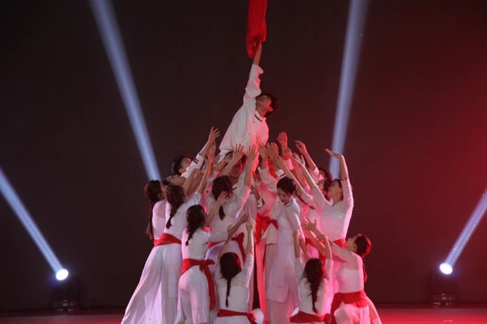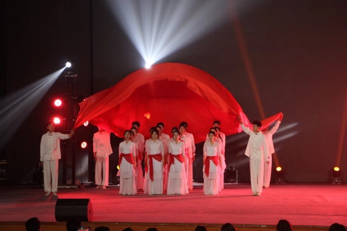 电子与电气工程学院的《红船》中,舞蹈演员们借助道具“红绸”来表现人们对红色精神的渴望、对生命的尊重和对革命奋斗的决心,让观众们深深的感受到革命者坚定理想、百折不挠的奋斗精神。