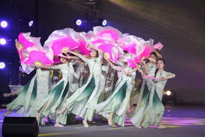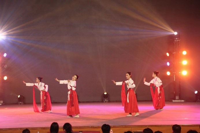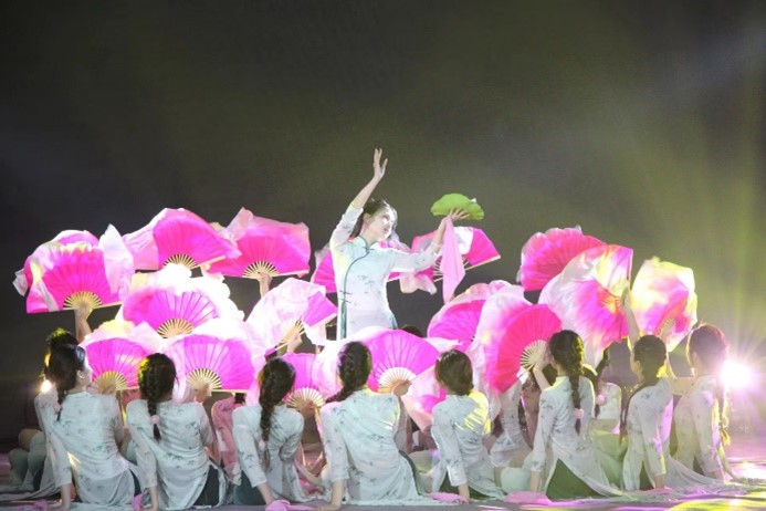 最后是由经济管理学院带来的舞蹈《出水莲》,以民间舞沧州落子动作为素材编创,将传统舞蹈形式与现代元素相融合,展现了中华传统文化和古典舞蹈的魅力。