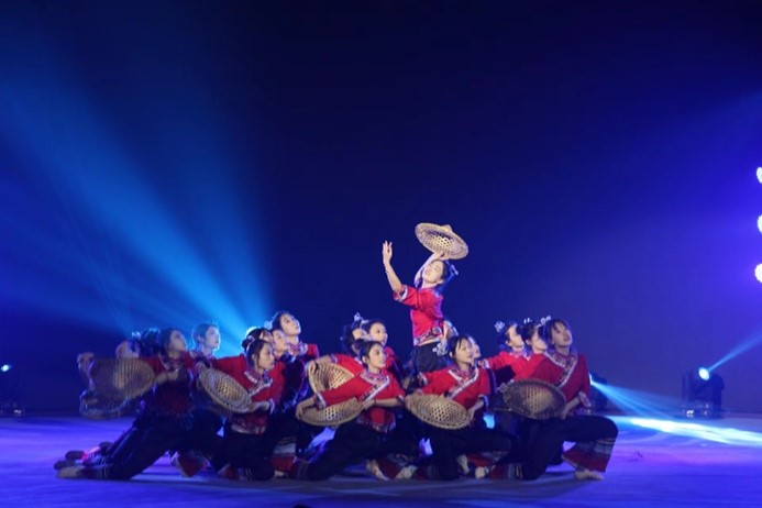 外国语学院带来《黎乡笠影》,头戴斗笠的舞者,在雨中翩翩起舞。灵动的舞步让我们身临其境,感受到大自然的独特魅力,也展现了黎族的文化特色,彰显了中华民族深厚的文化底蕴。