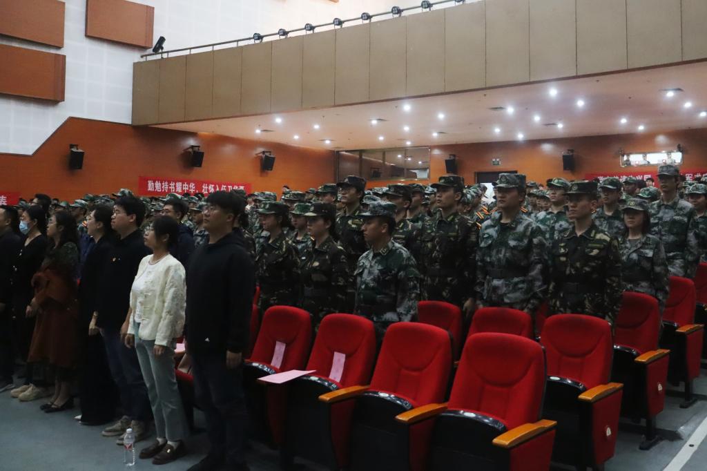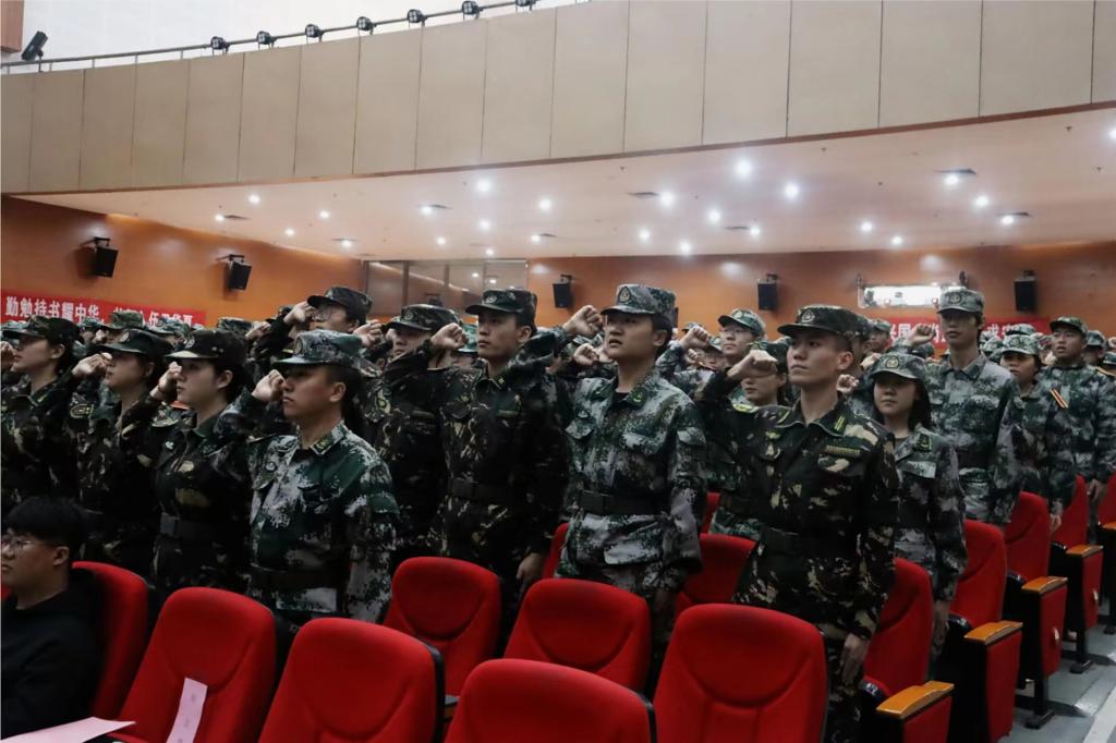 在国防后备营学生代表、计算机与信息技术学院刘一傲领誓下,全体国防后备营成员庄严宣誓。声如洪钟、气吞山河的宣誓展现了沧交学子的青春风采,也表明了他们服从党的领导,履行国防义务,踊跃献身国防建设的决心。