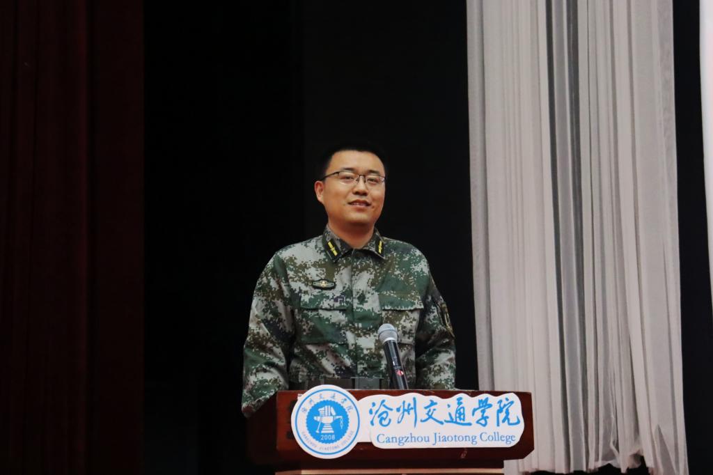 国防后备营营长王庆松号召广大同学,增强国防意识,肩负使命责任,随时响应祖国召唤,奔赴祖国最需要的地方,以只争朝夕的精神,为实现强军梦、强国梦贡献自己的青春和力量!