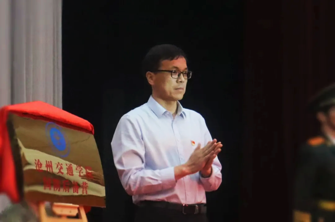 党委副书记吴立军和黄骅市武装部副部长胡超共同为“国防后备营”揭牌,吴立军宣读《73882必赢网页版“国防后备营”干部任职决定》。