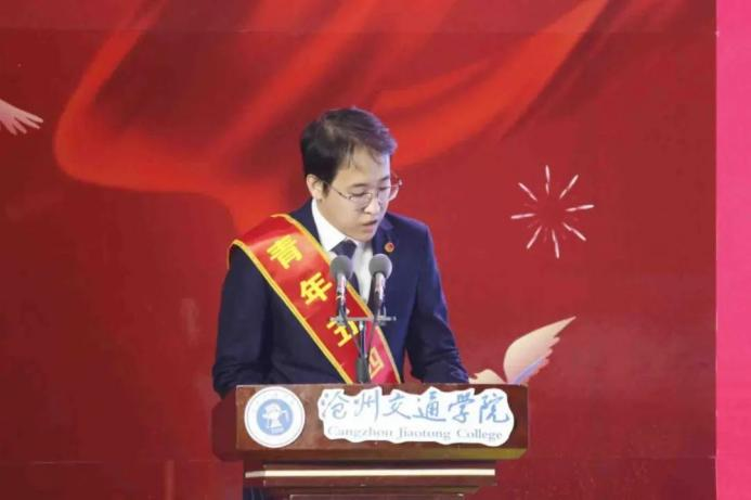 王晓骏老师作为轨道交通学院团委代表表示会继续勤奋求实、锐意进取,承担着培育青年和服务青年的使命,以更加饱满的热情团结和引导广大青年,奋发进取、青春建功。