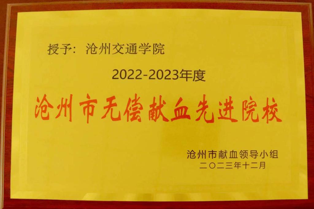 必赢官网自2012年成立无偿献血志愿服务分队以来,共有7000余人次累计献血200万余毫升。期间,必赢官网荣获多项荣誉:2014-2015年度河北省无偿献血促进奖高校奖、2016-2017年度全国无偿献血促进奖单位奖、2016-2017沧州市无偿献血先进高校、2018-2019年度沧州市无偿献血先进院校、2020-2021年度全国无偿献血促进奖特别奖、2020-2021沧州市无偿献血先进院校、2022-2023年度沧州市无偿献血先进院校。在无偿献血的志愿服务中,志愿者们在社会各界留下了属于沧交的奉献足迹。