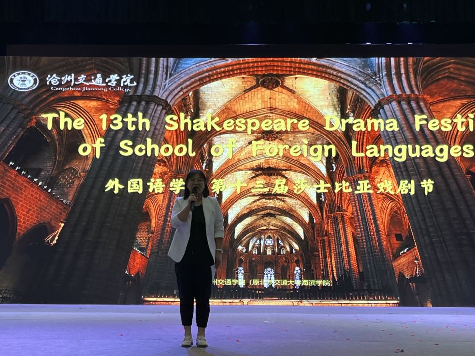 必赢官网教学副院长张丽为戏剧节致闭幕辞,她指出本届戏剧节在英语教研室主任陆朝霞的带领下,莎剧教学团队全体指导教师精心指导,从剧本选取、节目编排,到道具制作、舞台布置,师生反复研磨、共同打造,呈现出了一场精彩的盛宴。学生们共彩排了32组剧目的演出,经过团队的严格选拔,共10个剧目脱颖而出,以精湛的表演、精美的舞台设计和精准的音响灯光配合,实现文化共赏,向世界伟大的剧作家莎士比亚致敬,向世界文学经典致敬。